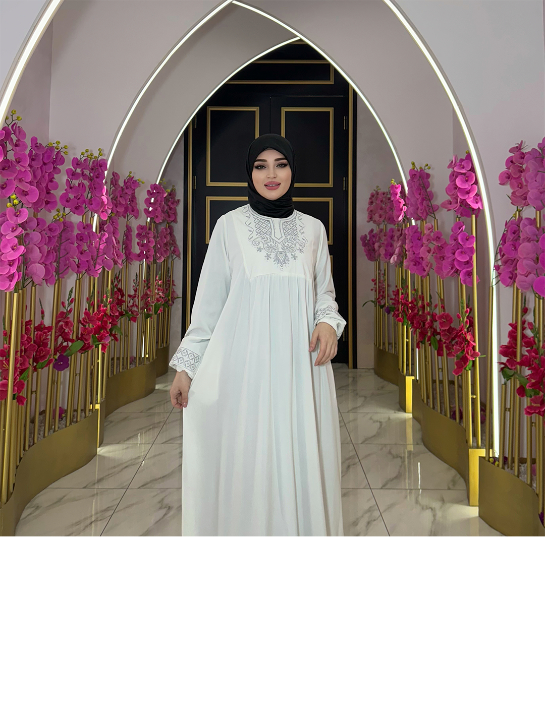 Yozgi ayollar ko‘ylagi shtapel uzun kashta tikilgan Haj va Umra uchun kundalik Al Marva